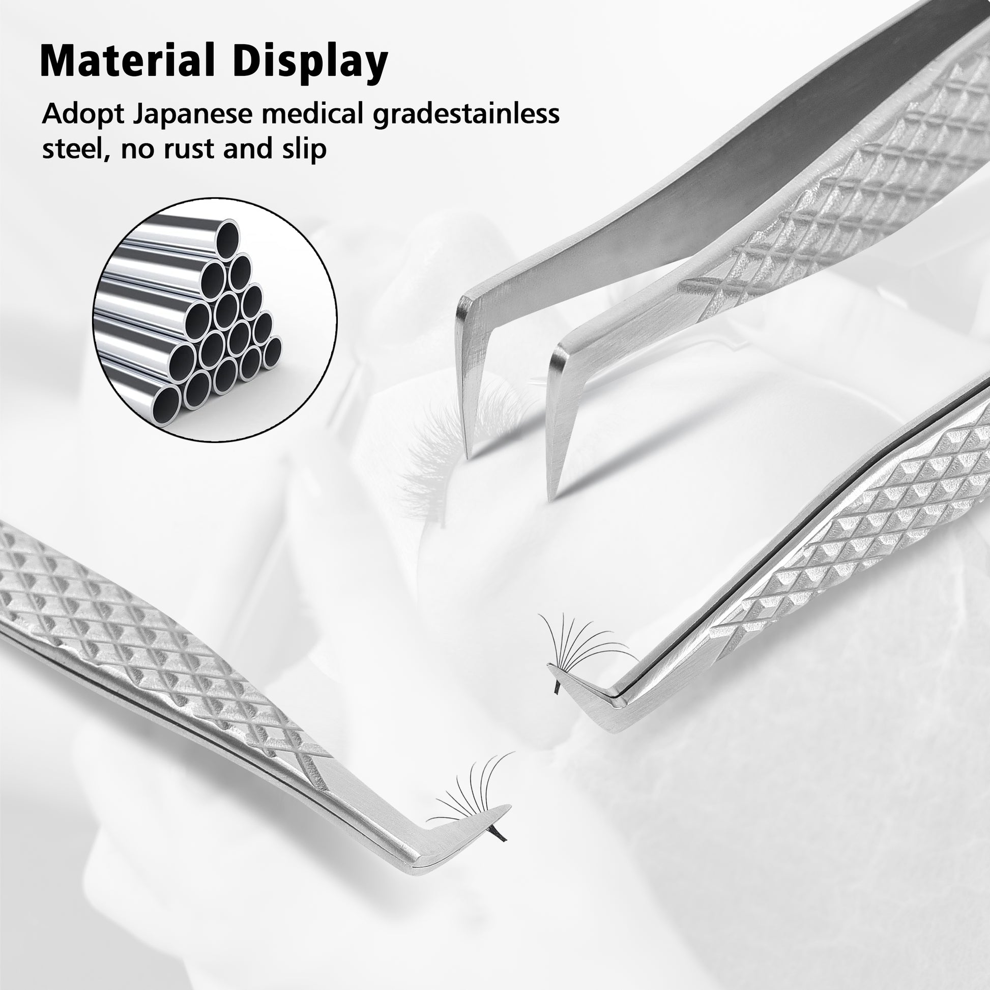 12cm L-Shape Volume Eyelash Extension Tweezer | Japanese Stainless Steel | Diamond Grip Anti-Slip
